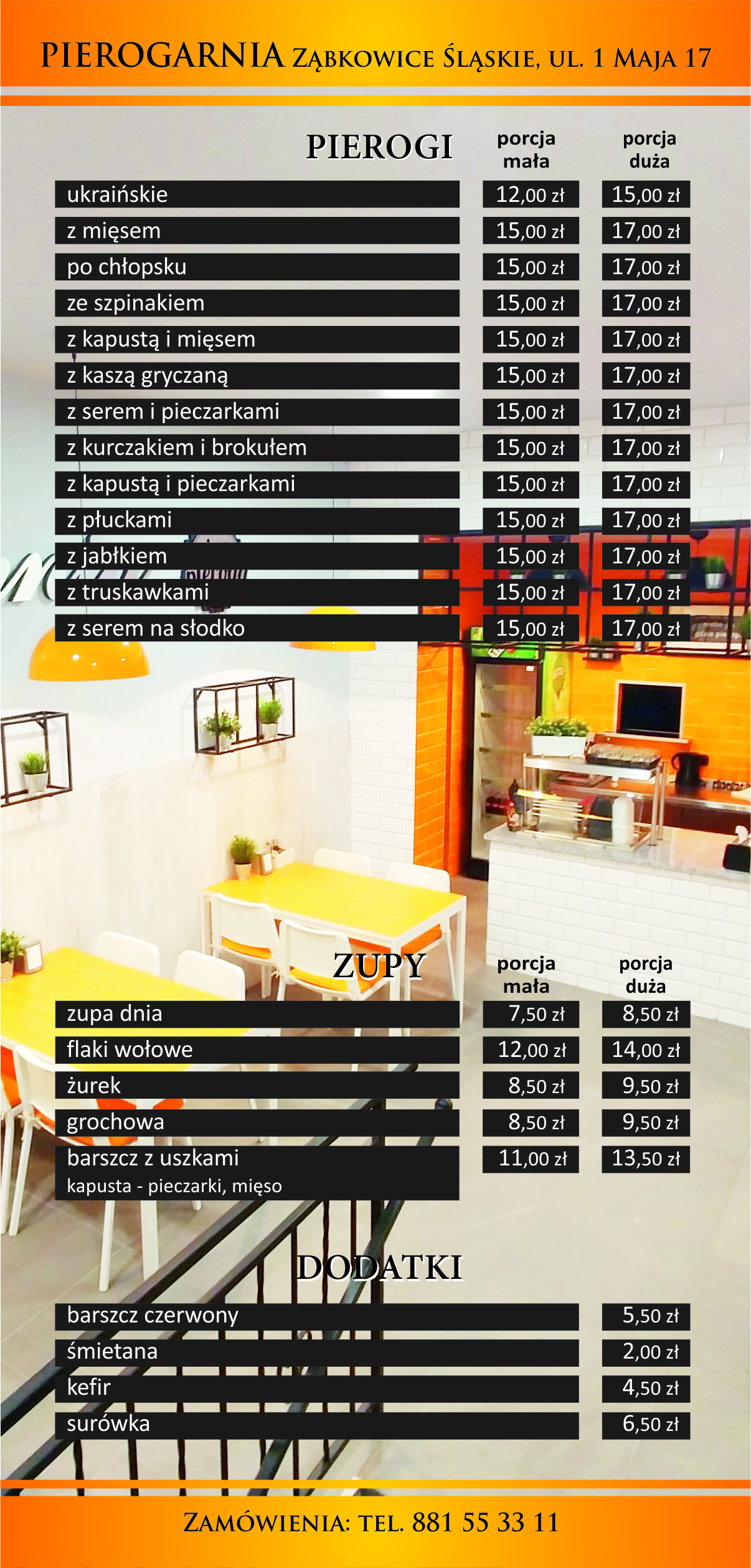 Pierogarnia znajduję się przy ul. 1 Maja 17 w Ząbkowicach Śląskich. W lokalu serwowane są przepyszne pierogi i naleśniki, dodatkowa codziennie inna zupa dnia. Czysty i świeżo wyremontowany lokal zachęca nie tylko wyglądem, ale przede wszystkim pysznościami i na słodko, i na ostro.